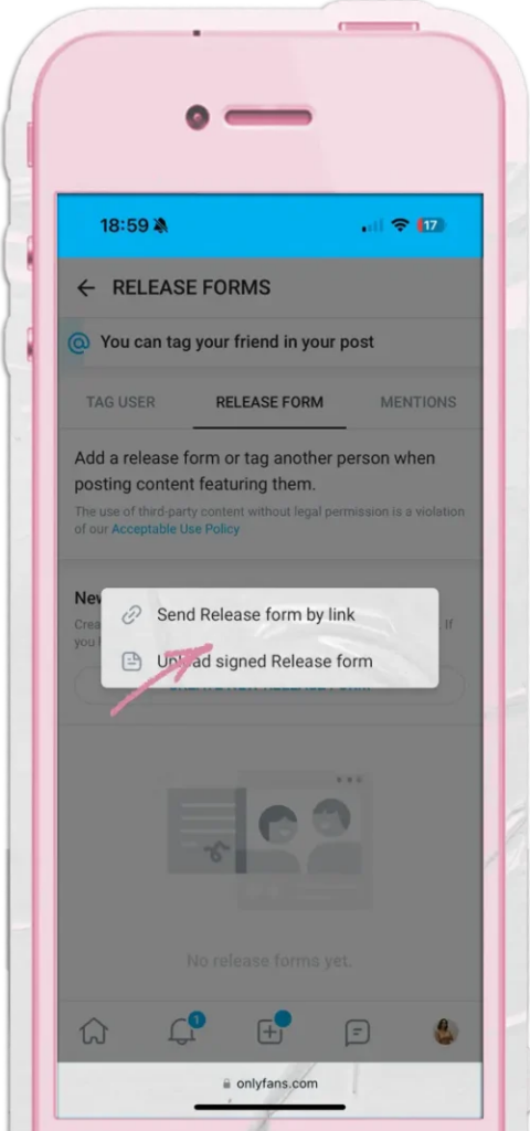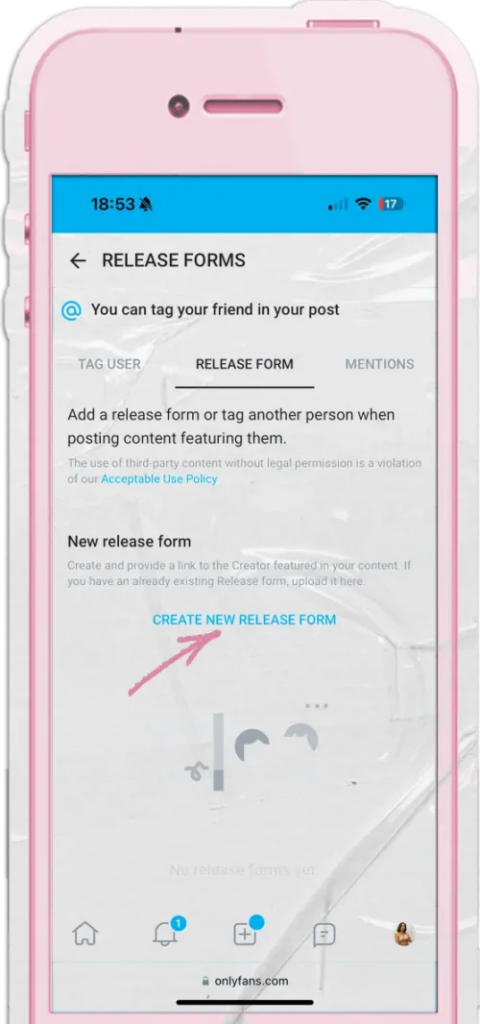 Creator Not on OnlyFans: Go to the “Release Form” tab and click “Create New Release Form” to generate a form they can sign.
